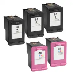 Remanufactured HP 68 5-Set Ink Cartridges: 3 Black and 2 Color